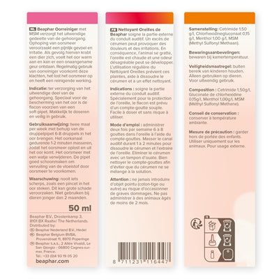 Beaphar oorreiniger met MSM verzorgt het uitwendige gedeelte van de gehoorgang. Ophoping van oorsmeer veroorzaakt een pijnlijk gevoel en irritatie.... Lees meer