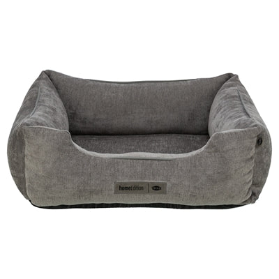 De Trixie Vital Hondenmand Lennox Hoekig Grijs is een stijlvolle en orthopedische ligplaats voor honden die zorgt voor maximaal comfort tijdens het rusten. De mand is bekleed met meubelstof van chenille, wat zorgt voor een luxe uitstraling en een aangename zachtheid. Het 2-lagen-systeem met een ligoppervlak van visco-elastisch schuim en comfortschuim past zich aan het lichaam van de hond aan en ondersteunt gewrichten en wervelkolom. De vormstabiele rand met schuimrubber en polyesterwattenvulling biedt een stevig ligkader. De afneembare hoes is wasbaar op 40°C, en de slipvaste onderkant zorgt ervoor dat de mand goed op zijn plek blijft liggen.